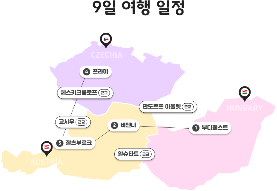 부다페스트(2박) > 비엔나(2박) > 잘츠부르크(1박) > 프라하(2박)
