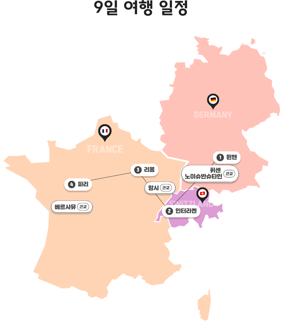 뮌헨(1박) > 인터라켄(2박) > 리옹(1박) > 파리(3박)