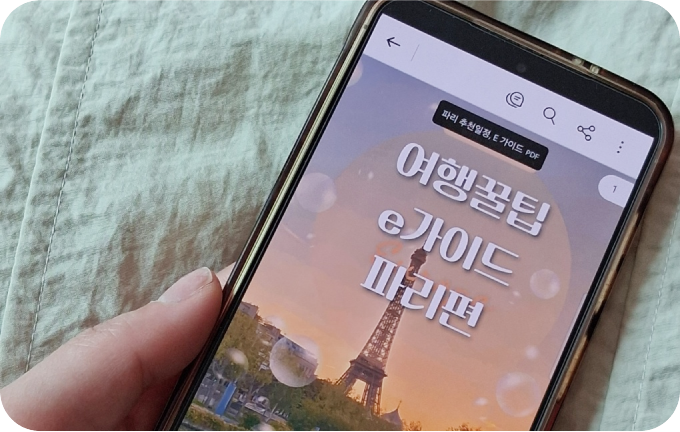 여행 출발 한달 전, 추천일정, 지도, 맛집, 준비물 등 유럽여행에 관한 정보 모음이 담겨있는 여행꿀팁e가이드를