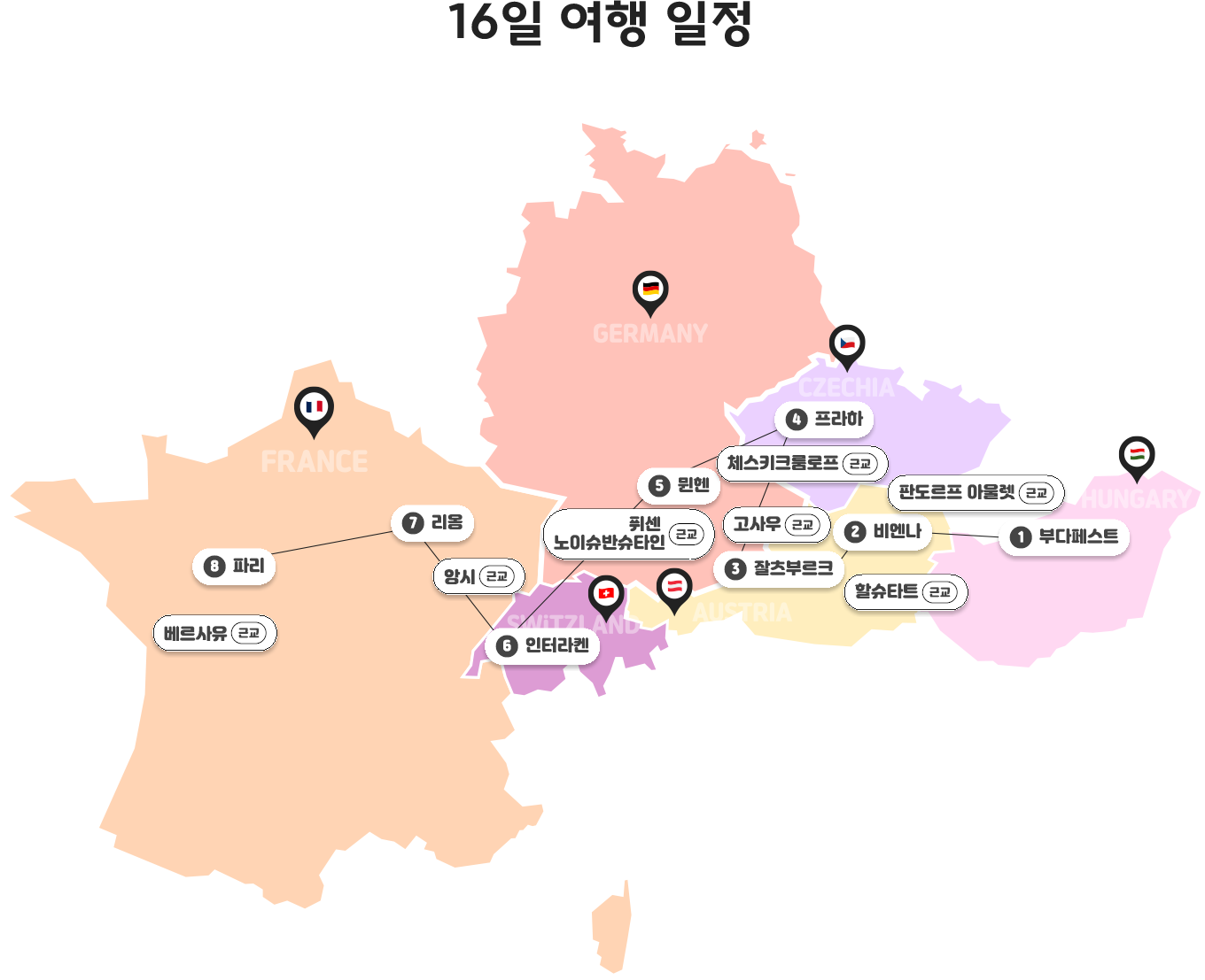 뮌헨(1박) > 인터라켄(2박) > 리옹(1박) > 파리(3박)